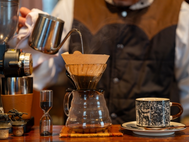 木の温もりが感じられる落ち着いた店内で、ウイスキーやコーヒーをゆったり楽しめるお店。心地よいジャズやクラシックの音楽が流れる中、安心感とくつろぎのひとときを提供しています。店主・武本瑞樹さんが淹れる美味しいコーヒーと、アルコール類が豊富に揃い、観光客や一人旅の女性にも愛されています。